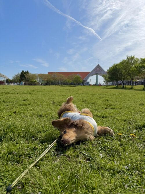 クッキーはここの芝生がお気に入りで