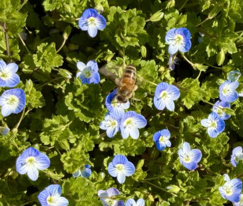 ォオイヌノフグリの青い小さな花が