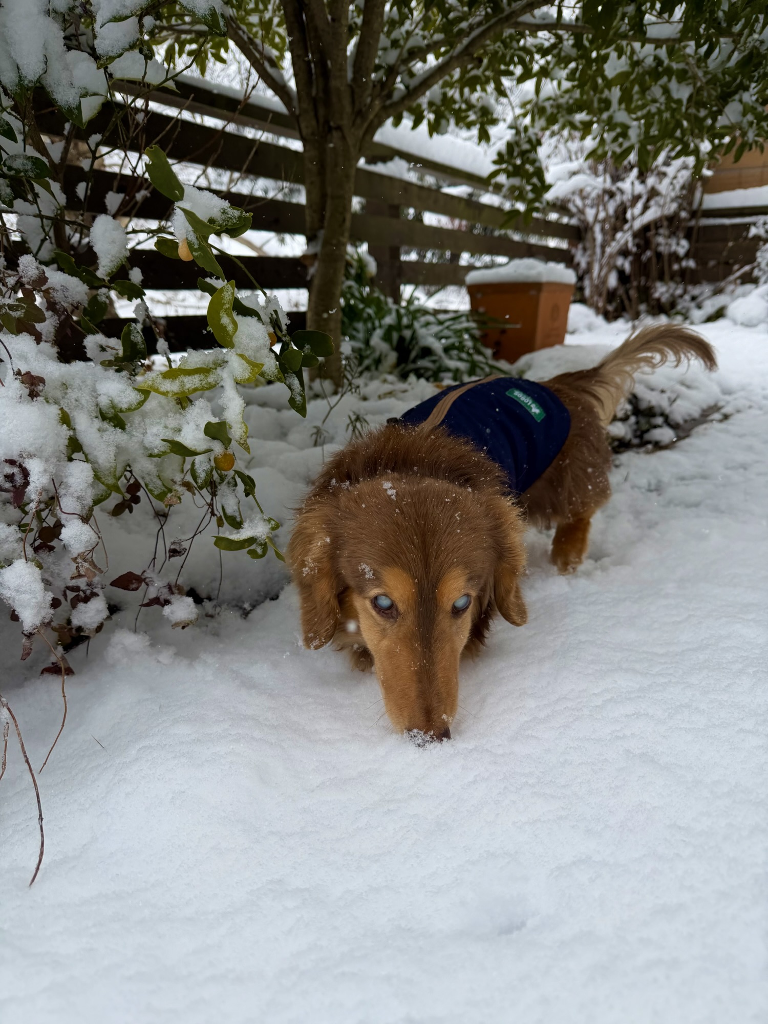 自ら進んで雪の中を歩き回って🐾